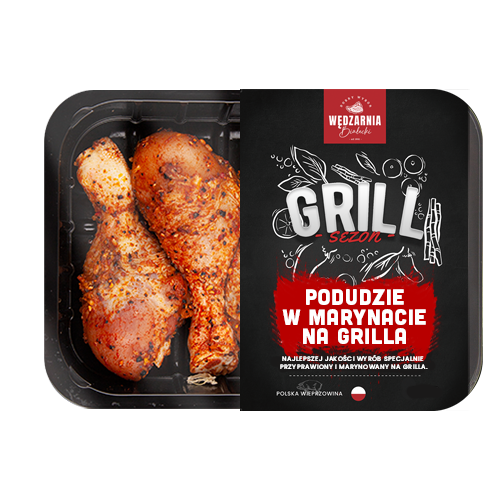 Gegrillter Schweinekamm in Marinade nach eigenem Rezept zubereitet, die Zusammensetzung umfasst unter anderem: Koriander, Pfeffer oder Paprika, um dem Grillgericht einen einzigartigen Geschmack zu verleihen.
